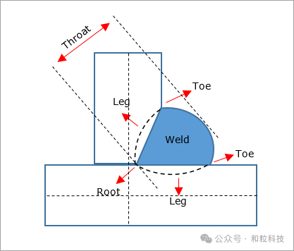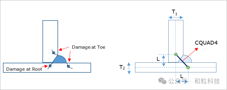 ● 角焊的焊缝评估位置为焊趾及焊根,不同建模方式评估位置: