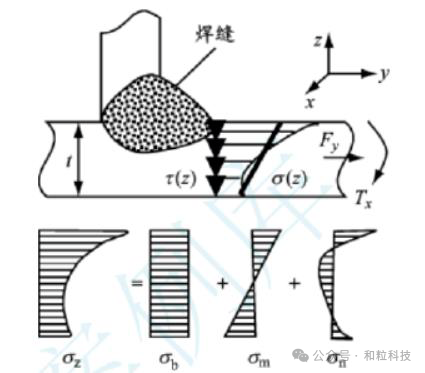 ● 将应力张量沿焊缝局部坐标合成沿焊缝长度正应力、垂直焊缝长度方向正应力、剪应力。